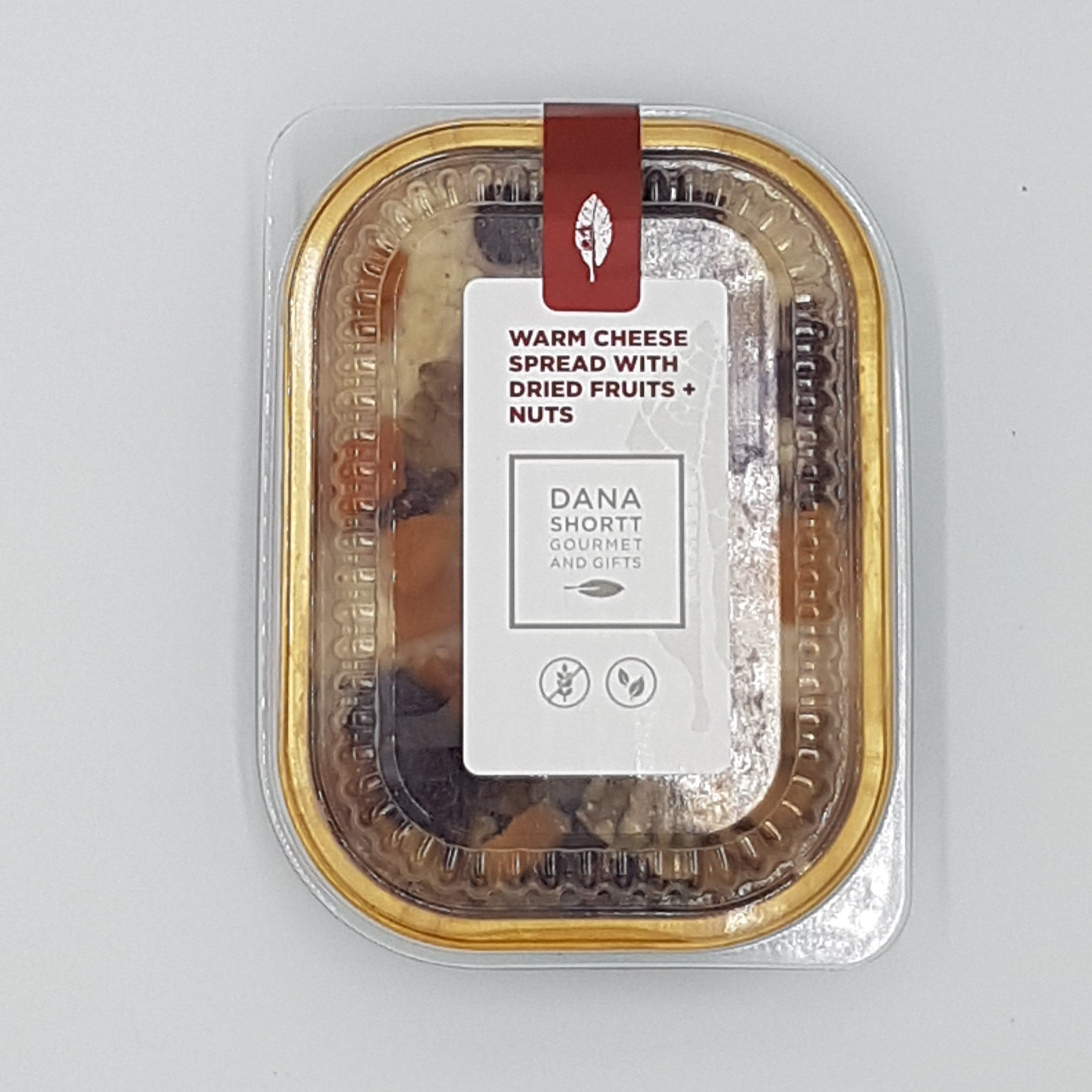 Ingredients: Cream cheese, aged white cheddar cheese, sour cream, walnuts, dried cranberries, dried apricots, honey, lemon, fresh rosemary.